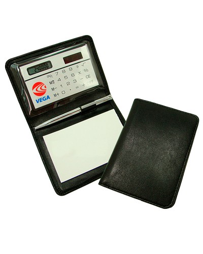 Conjunto calculadora com bloco de anotações personalização da logomarca em silkscreen na calculadora.