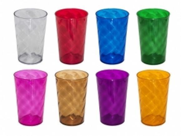 Copo de acrílico 550ml inteiro colorido e com detalhe espiral.
