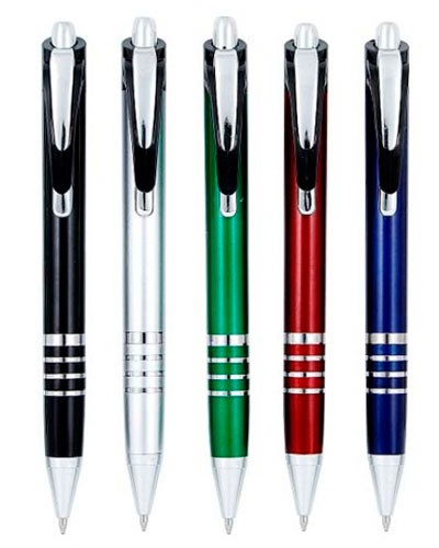 Caneta plastica diversas cores Clip em metal com aneis e ponteira cromada