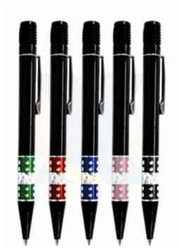 Caneta plastica corpo preto com detalhes colorido pontilhado com strass na parte inferior clip sanfonado