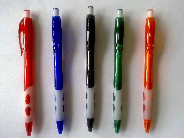 Caneta plastica corpo translucido diversas cores parte inferior branco