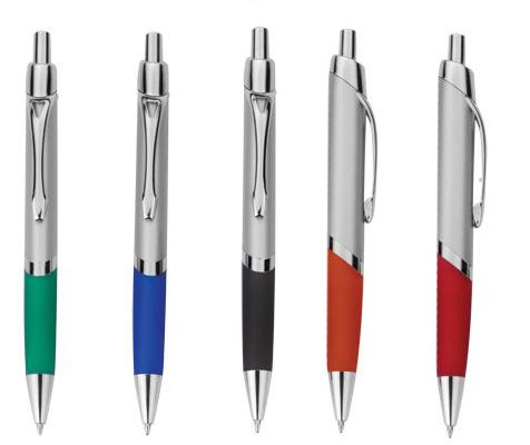 Caneta plastica formato triangular corpo prata grip emborrachada diversas cores