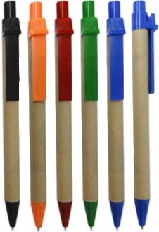 Caneta reciclável, reflorestada ponteira e clip plástico diversas cores com material 100% reciclado.
