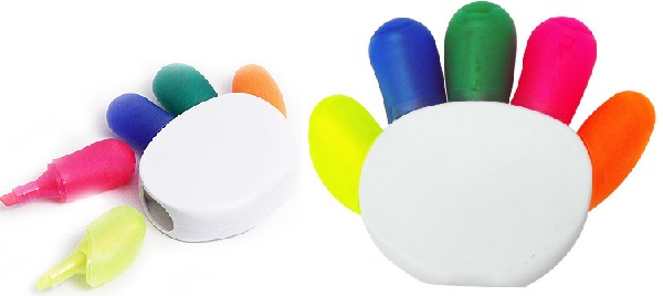 Marca texto formato mão em cinco cores disponiveis