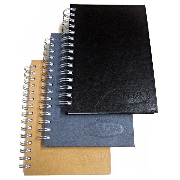 Agenda diária em Wire-o formato 15x21cm. capa dura com gravação baixo relevo ou hotstamp, miolo padrão impresso em 1 cor folha de rosto personalizada com dados do cliente sem limite de cores