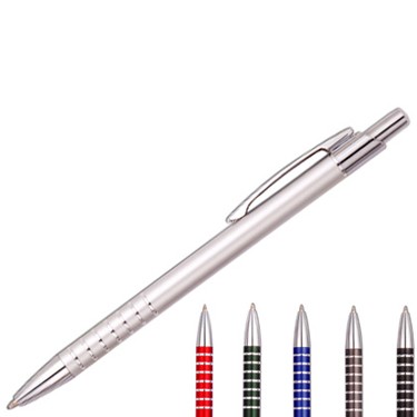 Caneta Metal/Alumínio parte inferior em seis cores disponiveis.