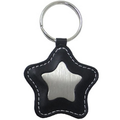 Chaveiro em couro, detalhe de metal com formato estrela.