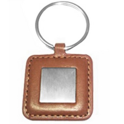 Chaveiro de couro, placa em metal.