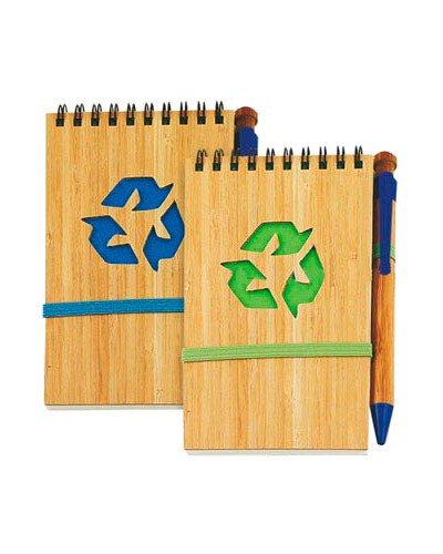 Bloco de anotações ecológico de bambu, acompanha caneta de bambu. Quantidade de folhas: 70.