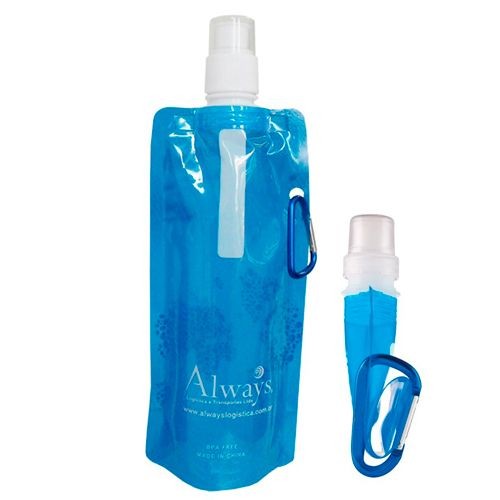 Squeeze plastico Dobrável 480ml.,com mosquetão 6 opções de cores,